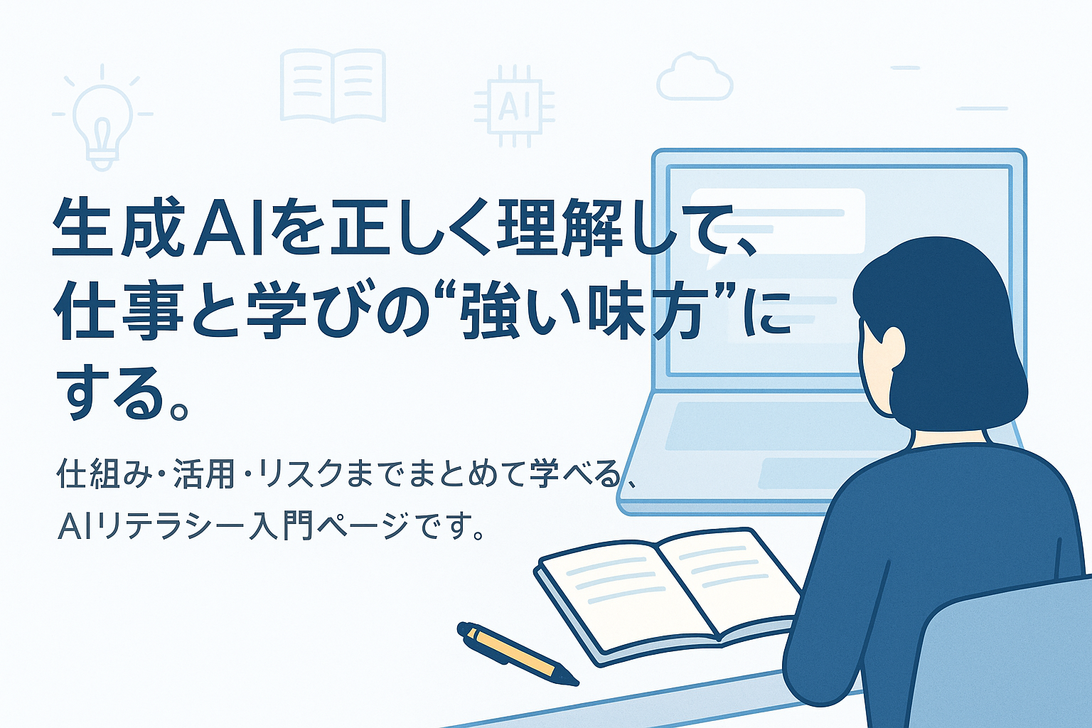このページでは、生成AIを「ちゃんと使いこなす」ために必要な入門知識・技術解説・活用事例・リスク・プロンプト術を、テーマ別に整理して一覧できるようにまとめています。