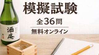 日本酒検定5級の無料オンライン模擬試験(全36問)。本番と同じ○×形式で基礎を確認。目標は26問以上(70%)。間違えたら解説記事で復習できます。