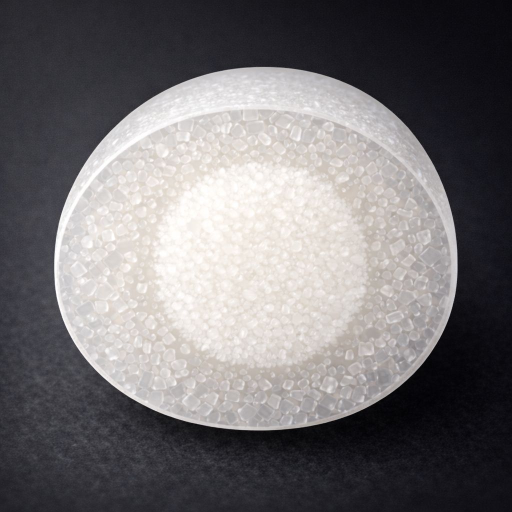 心白部分はデンプンの密度が低く、構造がやや粗い領域です。そのため物理的な強度がやや低く、衝撃に対して割れやすい傾向があります。